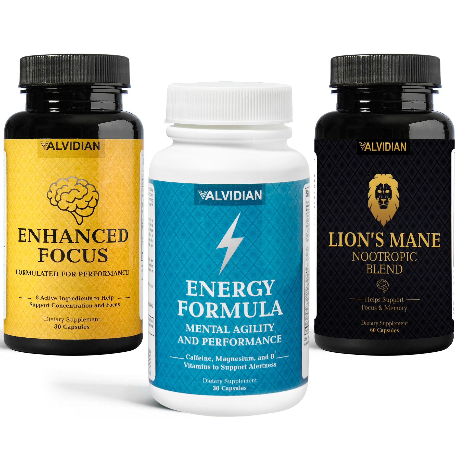 Our Energy Formula, Enhanced Focus, and Lion's Mane nootropic combination will revolutionize your ability to concentrate. These three clean, non-addictive formulas work together simultaneously to provide you with a competitive edge in mental performance and an increase in productivity.